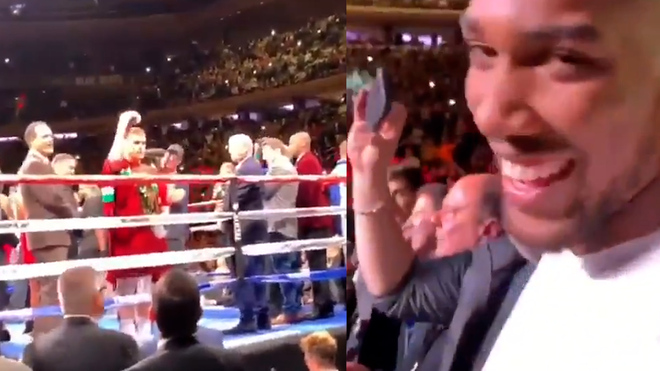 Canelo Alvarez salutes Anthony Joshua at ringside before his fight