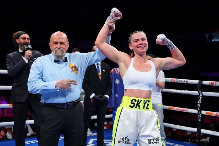 [ad_1] Skye Nicolson didn’t get the knockout she sought but still produced a brilliant performance in her first pro fight on home soil. The 2020 Olympic quarterfinalist dominated Tasmania’s Krystina Jacobs over ten rounds in their DAZN-aired regional featherweight title fight Saturday at South Bank Piazza in South Brisbane, Australia. Scores of 100-89. 99-90 and […]